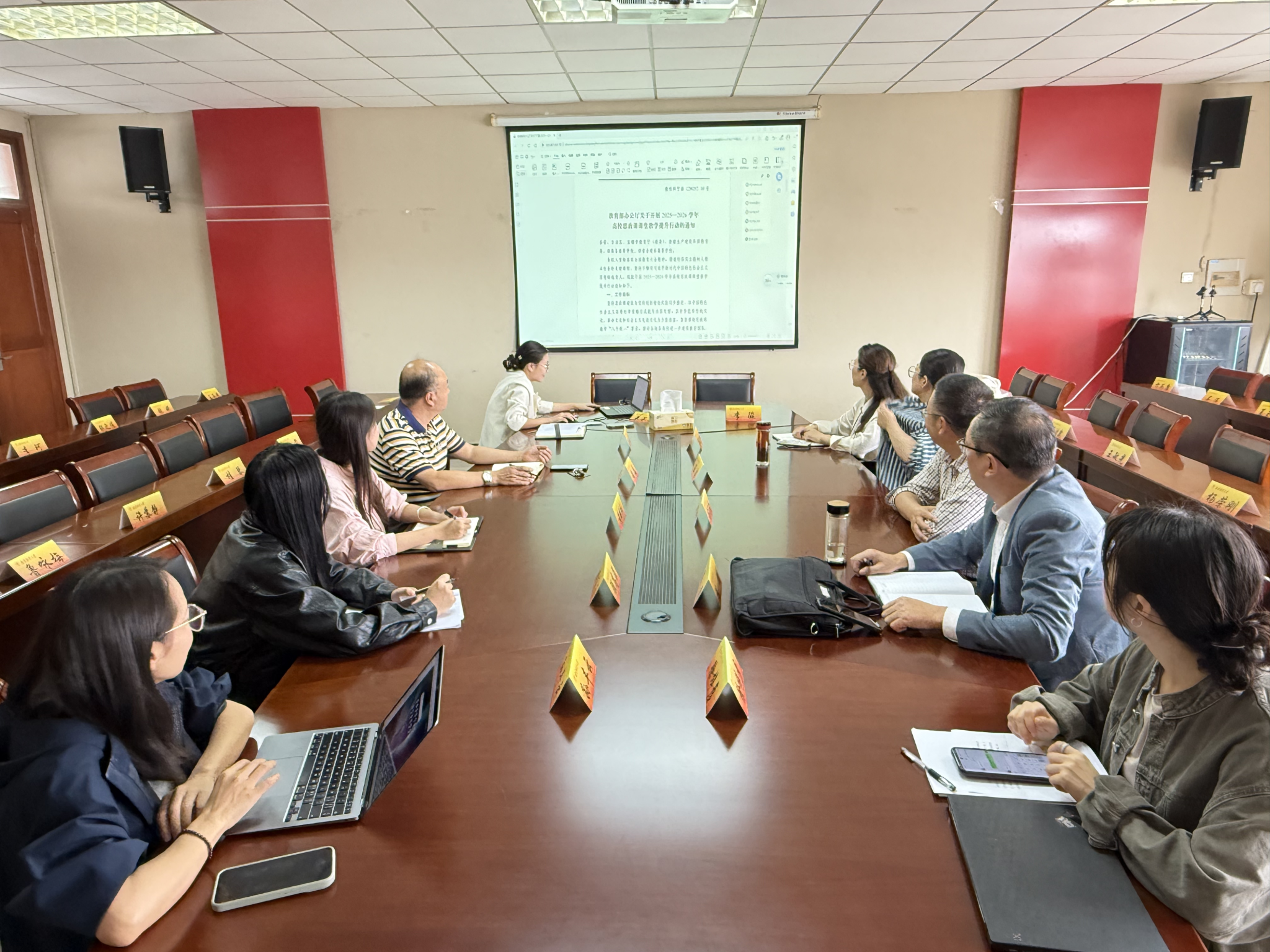 会议上,殷殷副院长向与会教师传达并共同学习了《教育部办公厅关于开展2025—2026学年高校思政课课堂教学提升行动的通知》。根据通知要求,我校已成立校级思政课教学指导组并制定了校领导参加思政课集体备课的工作方案。各教研部主任则就规范集体备课、创新教学方法、完善听课机制等方面展开交流,探讨增强思政课实效性的具体路径和方法。