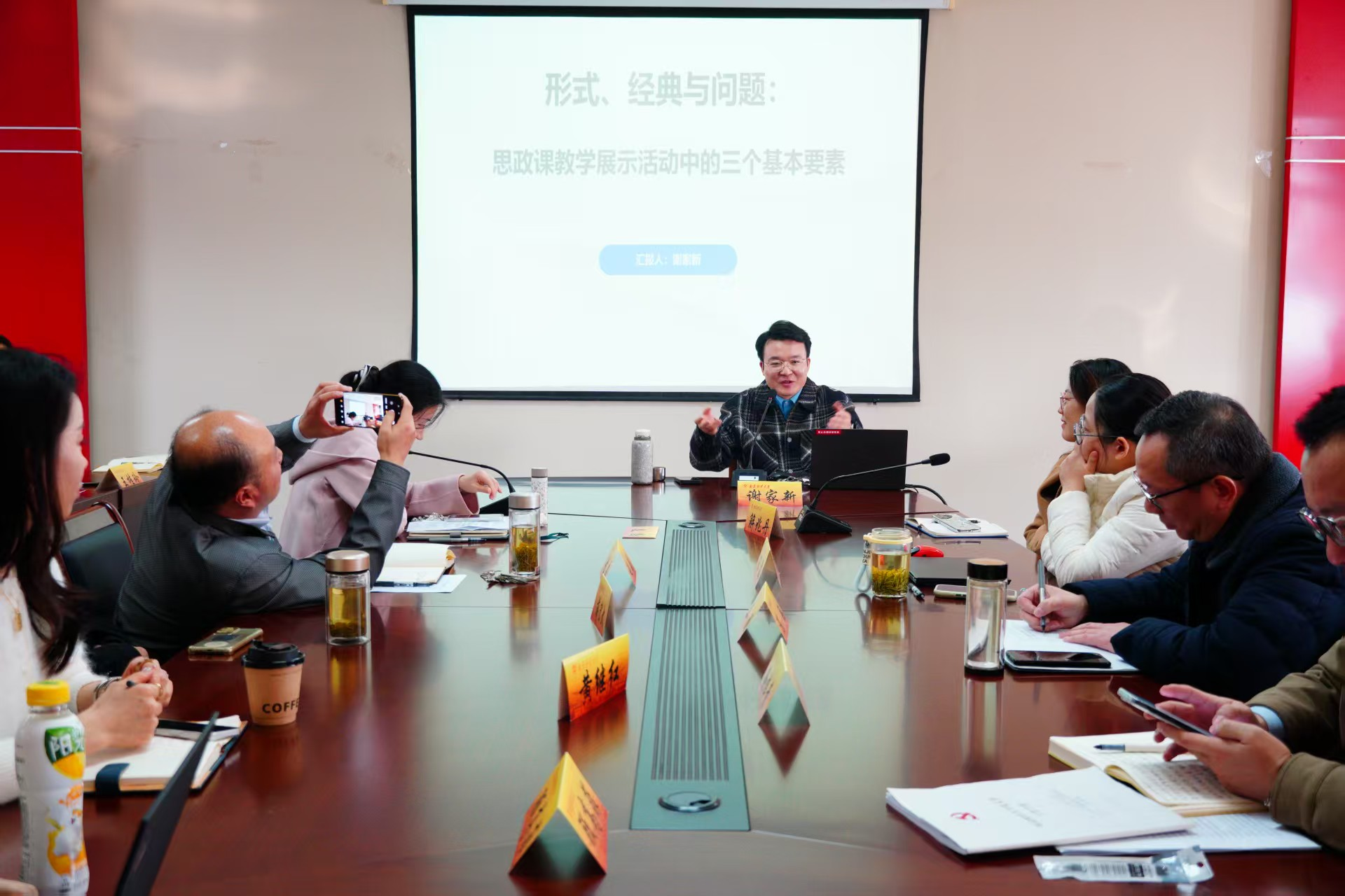 会议第二阶段,日韩无码举办“名师名课示范观摩”活动。谢家新老师就题为《形式、经典与问题:思政课教学展示活动中的三个基本要素》进行示范课程,并向各位老师分享教师教学比赛的心得体会。