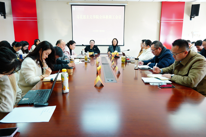 在德正楼508会议室召开全体教职工大会。会议由卓承芳院长主持。