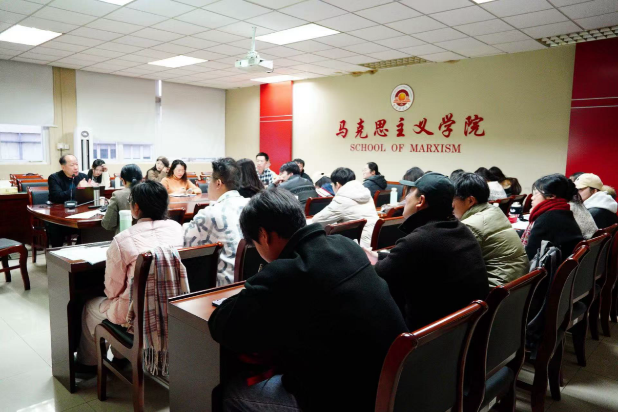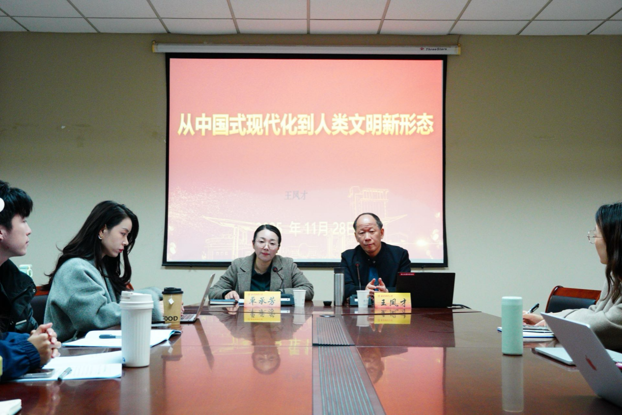 师生作“从中国式现代化到人类文明新形态”学术讲座。讲座由卓承芳院长主持,部分青年教师与2025级全体研究生参与。