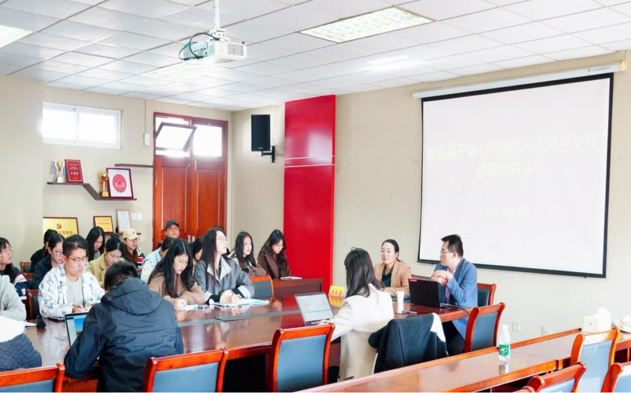 师生作题为“谈谈基于核心范畴的马克思主义理论研究方法”的学术讲座。本次讲座由卓承芳院长主持,部分青年教师及2025级全体研究生参与学习。