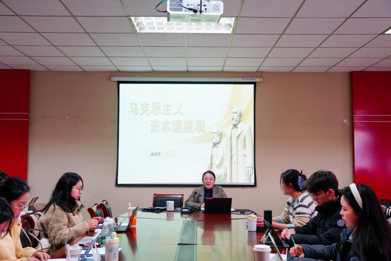 讲座中,卓承芳院长立足马克思的经典文本,围绕“马克思主义资本速度观”核心主题展开系统阐释。她从马克思主义理论的本源语境出发,梳理了马克思主义资本速度观思想的理论缘起与发展脉络,剖析了该思想对资本主义社会发展进程中速度异化现象的深刻洞察,还结合当代社会发展现实,解读了这一思想的时代价值与实践意义,引导学生从经典理论中汲取审视当下社会发展的理论智慧。